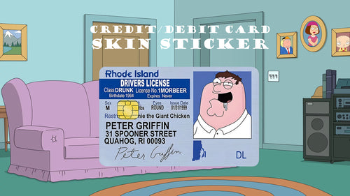 Family Guy "Peter Griffin License" Credit/Debit Card Skin Sticker Decal. Fits Small Chip.
